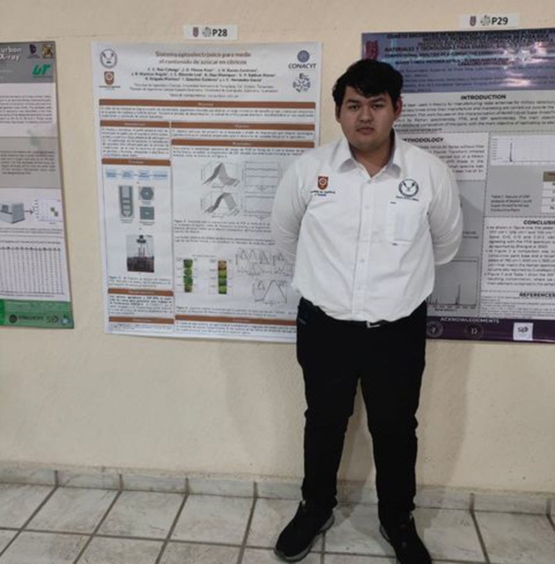 El joven universitario obtuvo el tercer lugar en este evento en donde presentó un proyecto que aborda un sistema optoelectrónico para medir el contenido de azúcar en cítricos, lo cual ha sido reconocido como una aportación significativa al ámbito de la investigación aplicada.