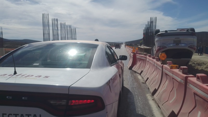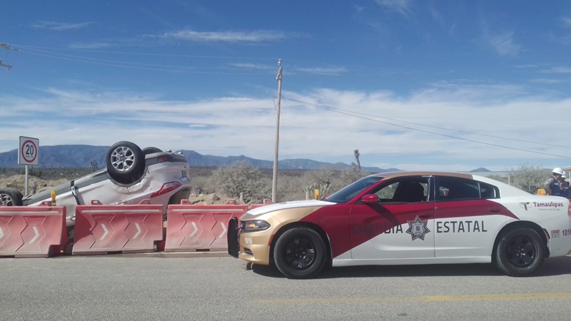 TULA, TAMPS. Personal de la Guardia Estatal de Apoyo Carretero comisionado a la Estación Segura Tula atendió un derrape y volcadura vehicular registrado en el kilómetro 43 de la Carretera Federal 101 sobre el tramo Tula-Victoria.