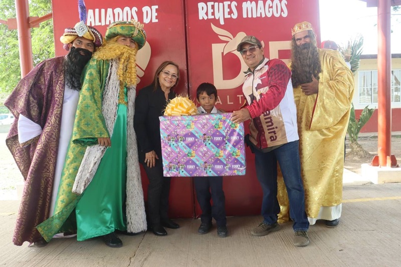 ALTAMIRA, TAMPS. Continuando con las festividades del Día de Reyes, la presidenta del Sistema para el Desarrollo Integral de la Familia en Altamira, C.P. Rossy Luque de Martínez, asistió al ejido Mariano Matamoros para ser partícipe del programa “Aliados del Día de Reyes”, una actividad que recabó los deseos de niños y niñas de esta zona ejidal para materializarlos en regalos que fueron obsequiados por funcionarios del Gobierno Municipal y el propio DIF.
