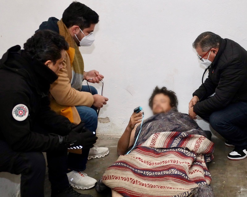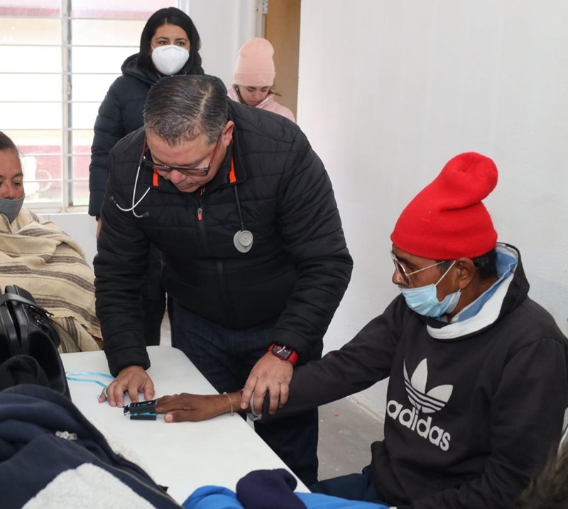 En compañía del coordinador de Protección Civil del Municipio Juan José Perales y personal del Centro Médico del DIF Victoria, supervisó la atención de alojo, abrigo y alimentación que se les brinda para protegerlos de la baja temperatura que se registra en la ciudad por paso del frente frío No. 27.