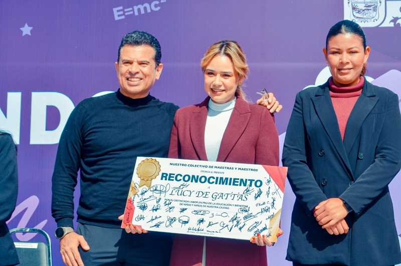 En el evento “Equipando con el Corazón”, el profesor Juan José Uvalle, agradeció y reconoció a nombre de los más de mil maestros, directivos, padres de familia y alumnos ahí presentes, la labor que realiza Lucy de Gattás, junto al alcalde Eduardo Gattás Báez, en pro de la educación y bienestar de las familias victorenses.