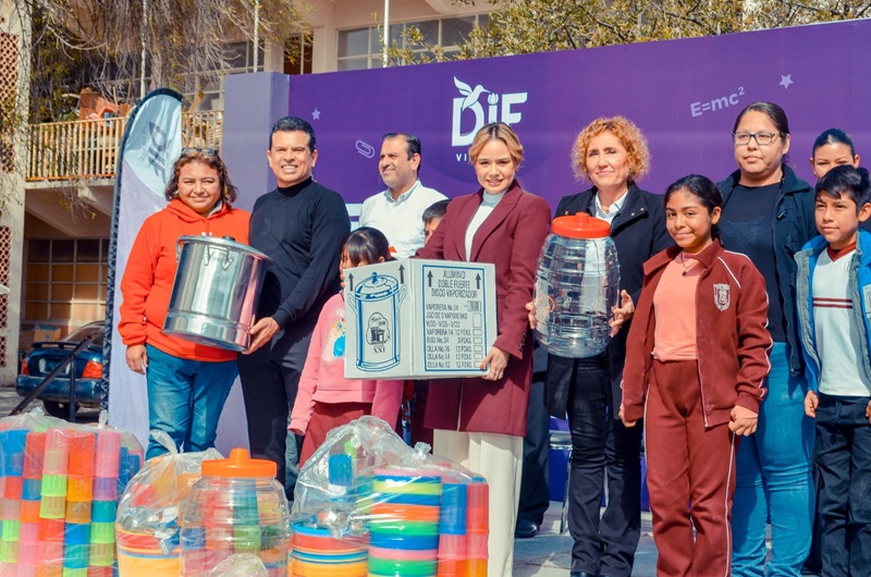 CIUDAD VICTORIA, TAMPS. Al hacer entrega de equipamiento para comedor a 98 escuelas de educación básica, la presidenta del Sistema DIF Victoria Lucy Rodríguez de Gattás refrendó su compromiso de seguir trabajando incansablemente por la comunidad educativa y sectores más vulnerables de la sociedad.