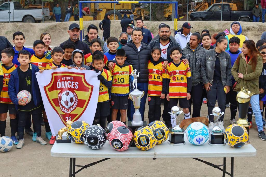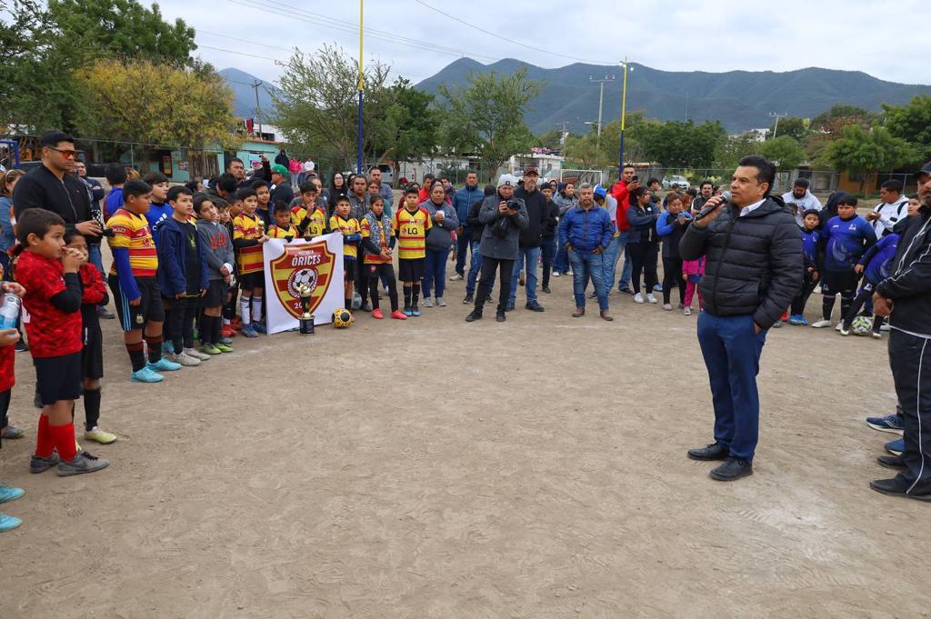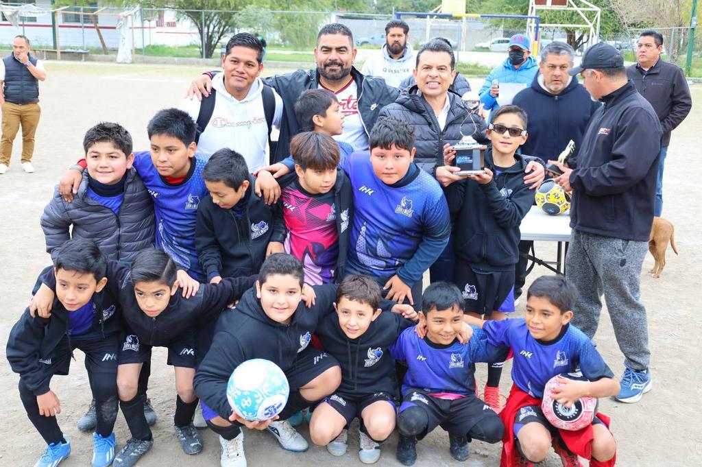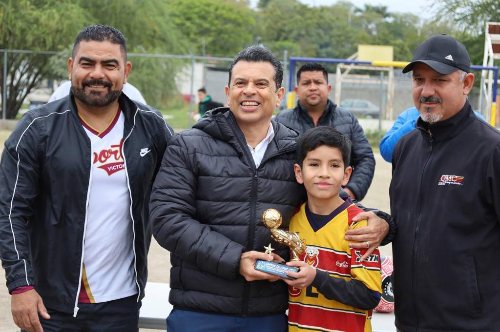 En su visita a distintos núcleos urbanos, atendió la invitación de la familia deportista de la colonia La Presita donde presidió la premiación del Torneo Sabatino de la categoría infantil y reiteró ante futbolistas, entrenadores y padres de familia el compromiso de dar fuerte impulso al deporte victorense en este 2024.