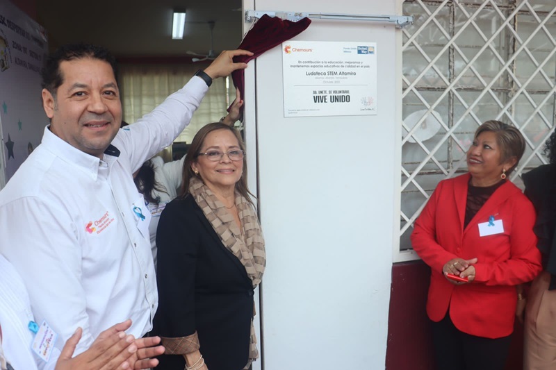 Se informó durante el protocolo de apertura que la empresa Chemours Planta Altamira, a través de su Planta de Dióxido de Titanio, realizó una significativa donación de 250 mil pesos para la construcción de dicha ludoteca especializada en ciencias, tecnología, ingeniería y matemáticas.