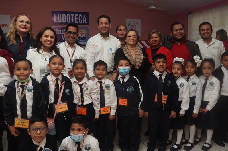 En ese sentido, fue llevada a cabo la inauguración de una moderna Ludoteca en la Escuela Primaria “Despertar del Campesino”, ubicada en la colonia Miramar. Lo anterior, fue posible derivado de la colaboración entre la empresa Chemours y la Fundación “Fondo Unido México”.