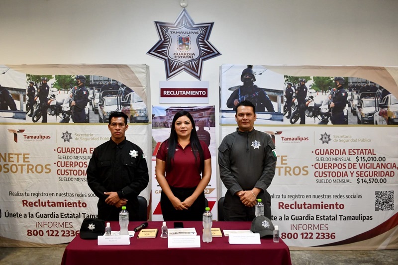 CIUDAD VICTORIA, TAMPS. Continuando con el compromiso de aumentar el estado de fuerza de la Guardia Estatal y los Cuerpos de Vigilancia, Custodia y Seguridad, para este 2024 la Secretaría de Seguridad Pública de Tamaulipas (SSPT) cuenta con una bolsa de trabajo con más de 500 vacantes operativas.