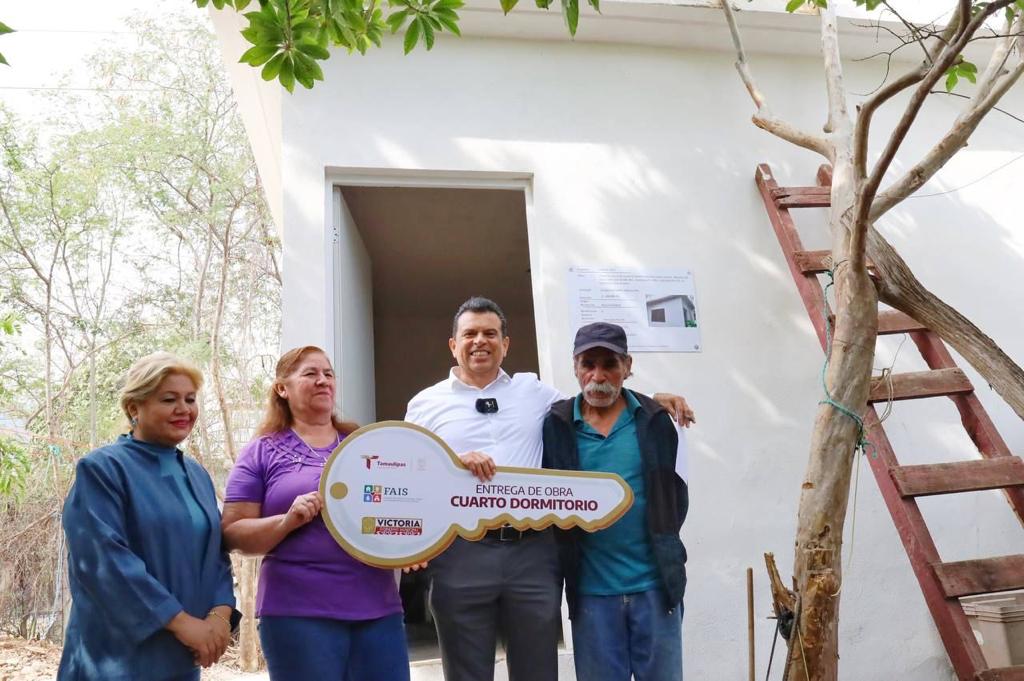 CIUDAD VICTORIA, TAMPS. El presidente municipal de Victoria Eduardo Gattás Báez hizo entrega de llaves de cuartos dormitorio a tres familias más en situación vulnerable con el fin de dignificar la calidad de vida de sus integrantes.