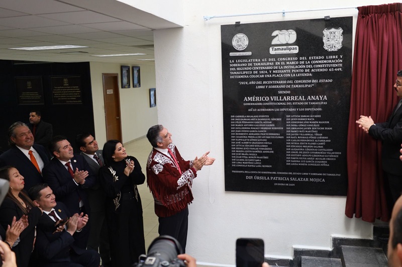 Devela gobernador placa conmemorativa del Bicentenario del Congreso de Tamaulipas