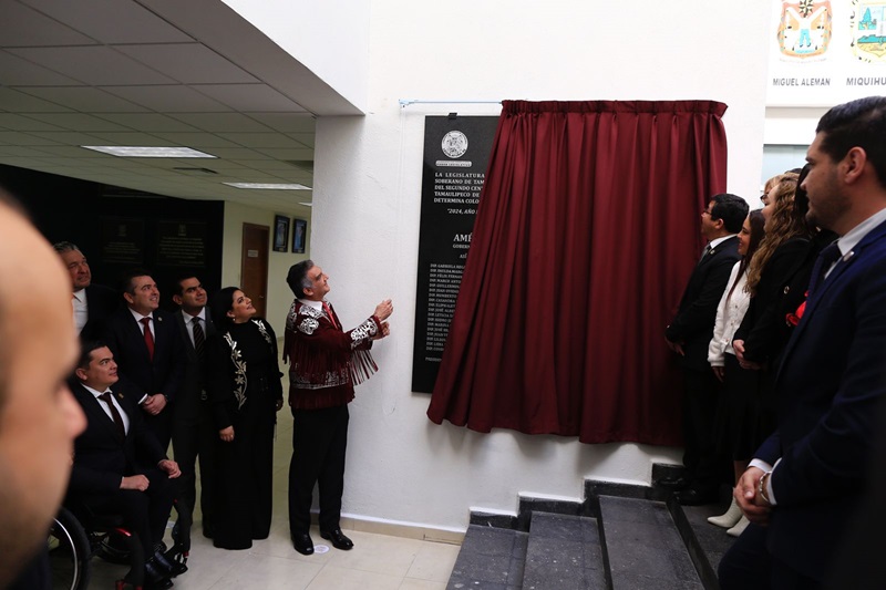 Tras la ceremonia protocolaria, el gobernador Américo Villarreal Anaya y la presidenta del Congreso, Úrsula Patricia Salazar se trasladaron a las escalinatas, donde se procedió a la develación de la placa.