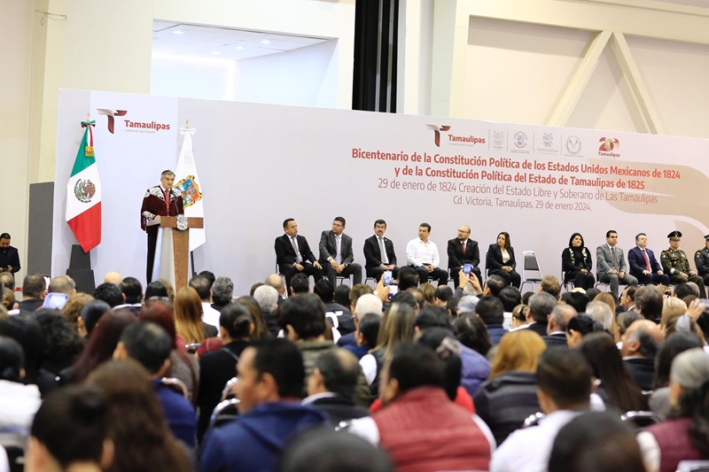 Al celebrar los 200 años de la creación del estado de Tamaulipas y de la Constitución Política de los Estados Unidos Mexicanos de 1824, en el Polyforum de esta ciudad, y acompañado por la diputada Úrsula Salazar Mojica, presidenta del Congreso del Estado y del magistrado David Cerda Zúñiga, presidente del Supremo Tribunal de Justicia, el gobernador del estado aseguró que dicha celebración debe ser también la oportunidad para dar nueva vigencia a los principios de autoridad y legalidad.