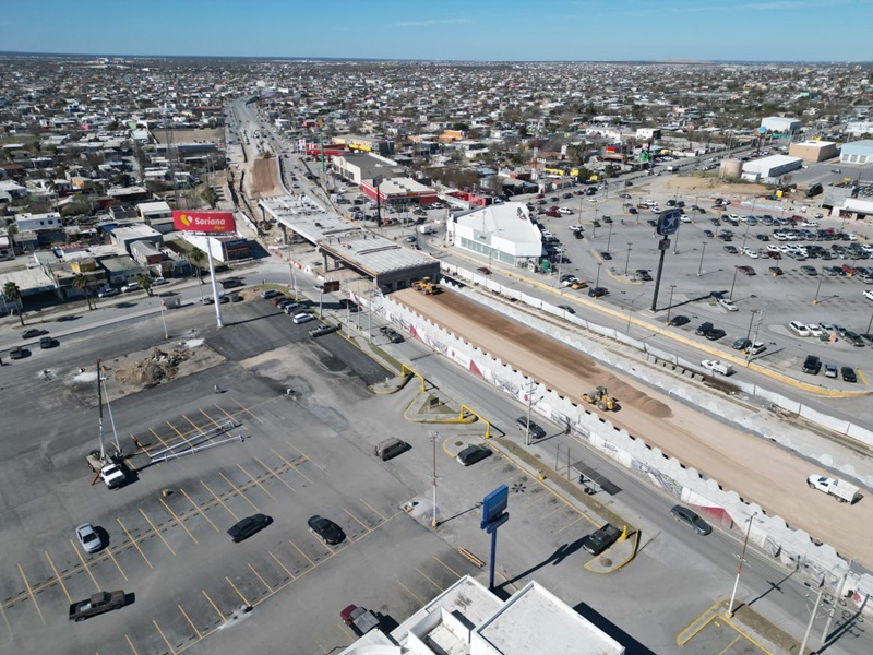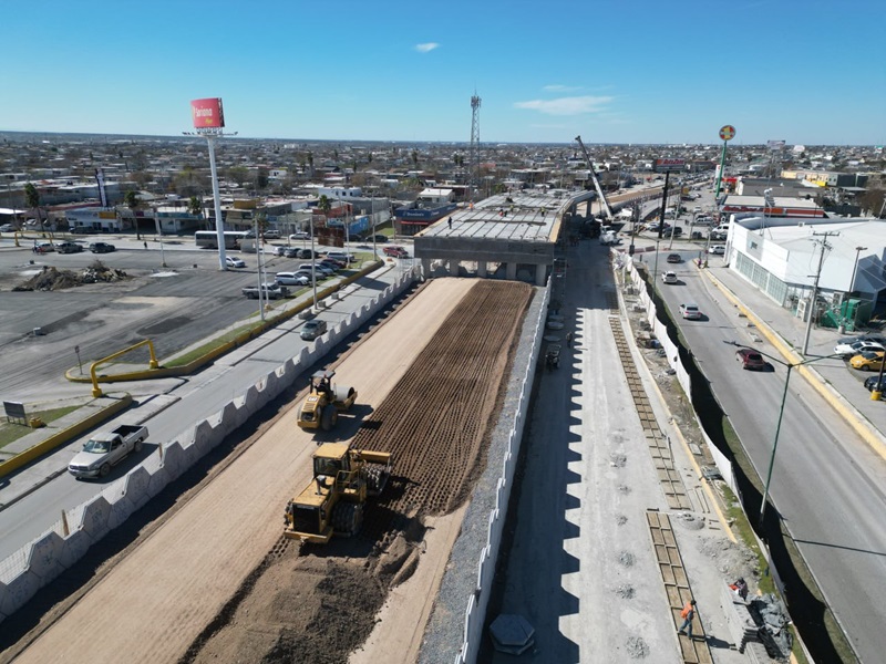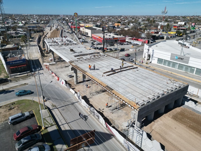 NUEVO LAREDO, TAMPS. Un avance del más del 60 por ciento se lleva en los trabajos de construcción del Puente Vehicular por Calzada de los Héroes y Eva Samano con el que se mejorará la movilidad del poniente de la ciudad.