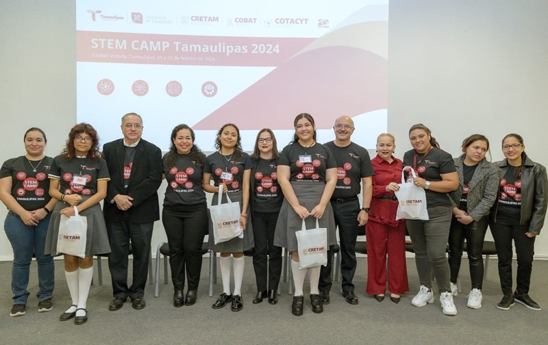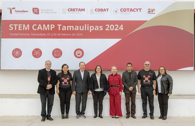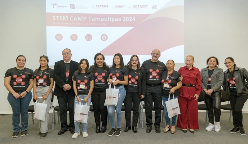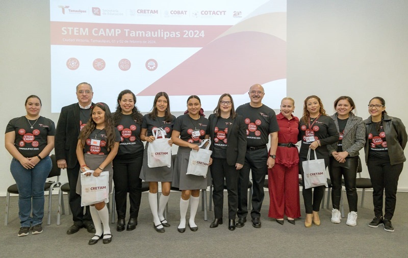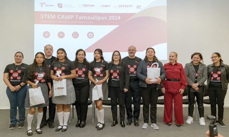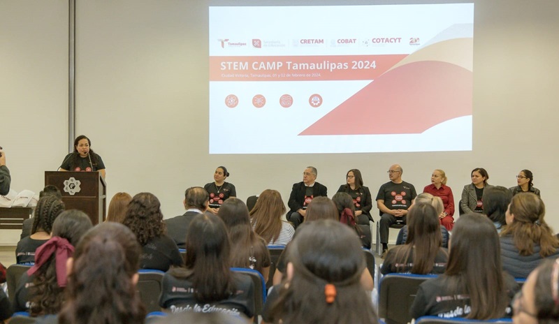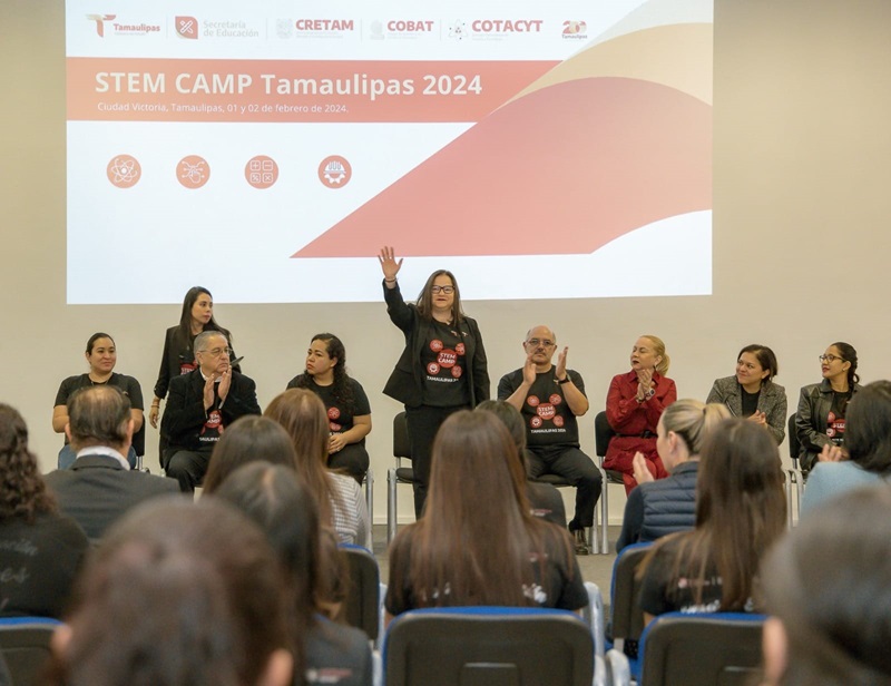 CIUDAD VICTORIA, TAMPS. Como parte de las actividades próximas a la celebración del Día Internacional de la Mujer y la Niña en la Ciencia, la secretaria de Educación de Tamaulipas, Lucía Aimé Castillo Pastor, inauguró el “STEM CAMP Tamaulipas 2024”, en el Centro Regional de Formación Docente e Investigación Educativa (CRETAM), donde participan las estudiantes del Colegio de Bachilleres ubicados en zonas rurales de la entidad, así como las maestras de asignaturas de Ciencia, Tecnología, Ingeniería y Matemáticas.