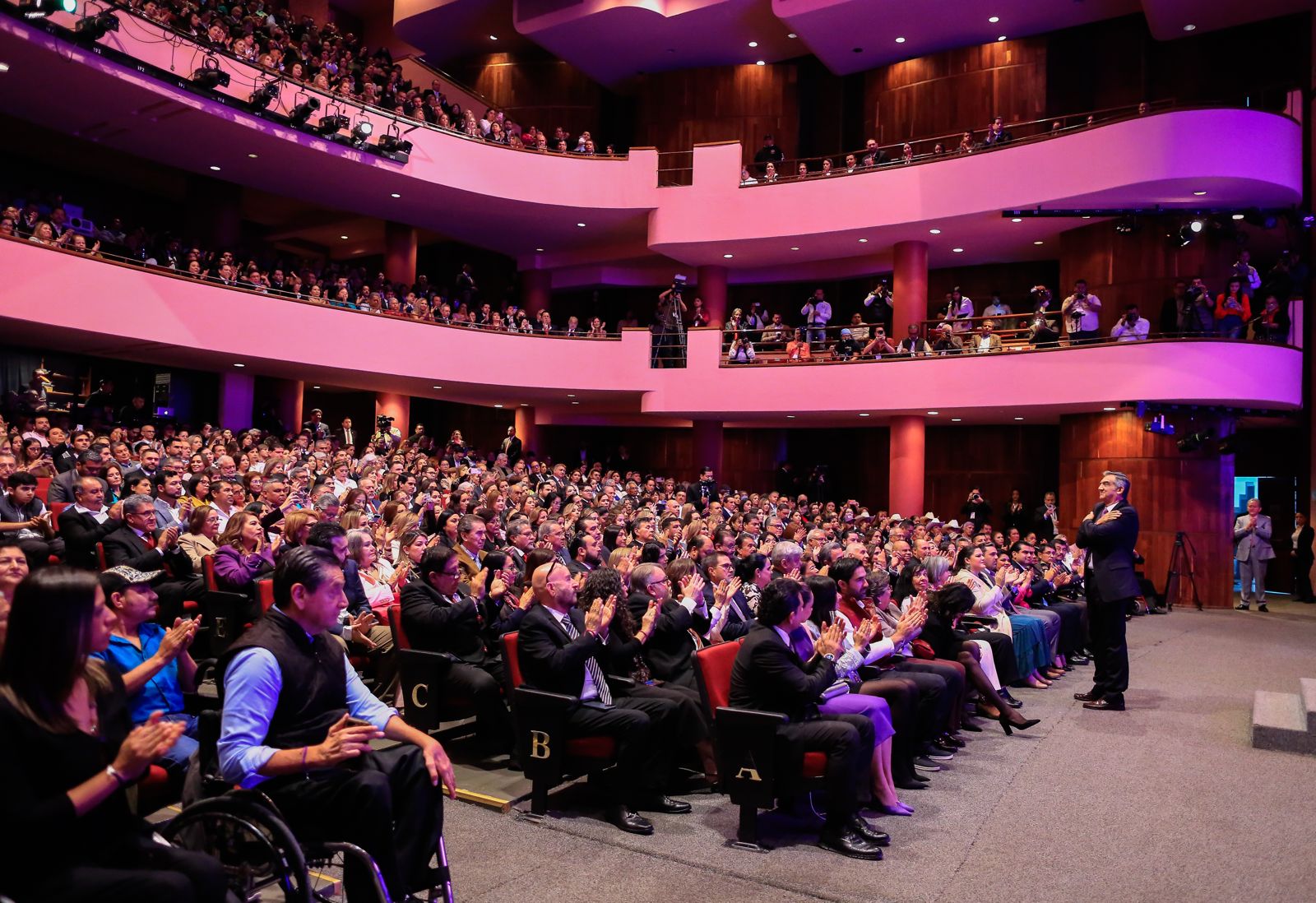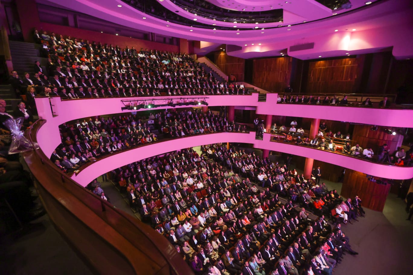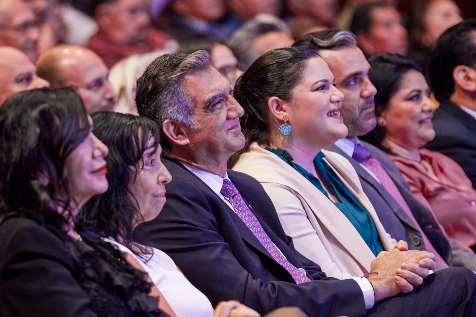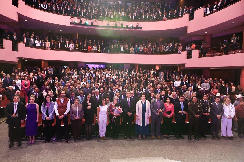 CIUDAD VICTORIA, TAMPS. Teniendo como marco el Teatro Amalia González Caballero de Castillo Ledón de esta ciudad, y acompañada de su esposo el doctor Américo Villarreal Anaya, gobernador del estado, la doctora María de Villarreal, presidenta del Sistema DIF Tamaulipas, presentó su primer informe de actividades al frente de esa institución, con el lema “La paz es el camino, y tú eres el reflejo”.
