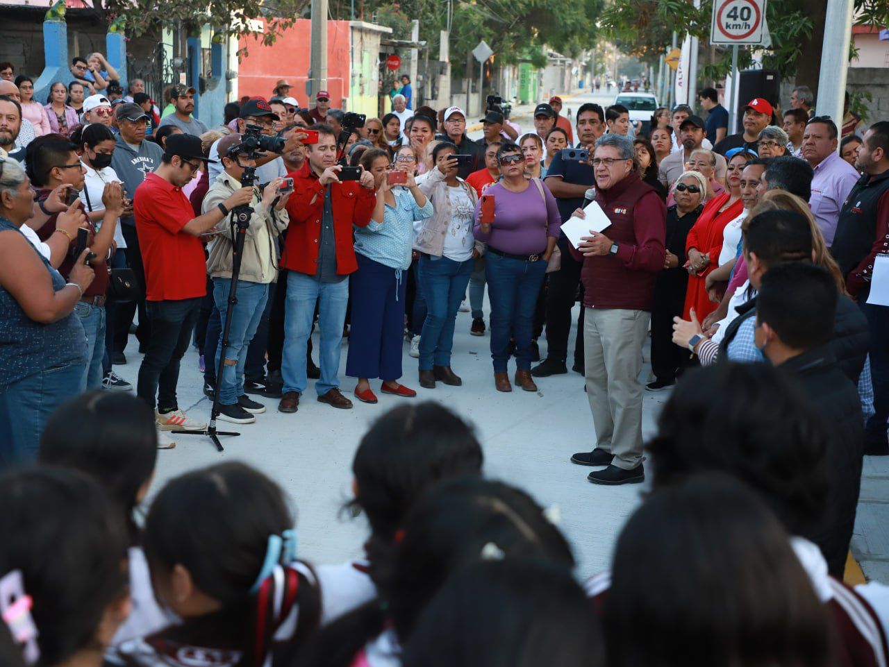 “En este gobierno tenemos como política que todas las escuelas deben de estar al cien por ciento, y eso incluye también sus calles, por eso es que desde Octubre del 2021, cuando iniciamos esta administración, le hemos puesto énfasis en pavimentar vialidades que colinden con las escuelas”, expresó el jefe edilicio en esta inauguración.