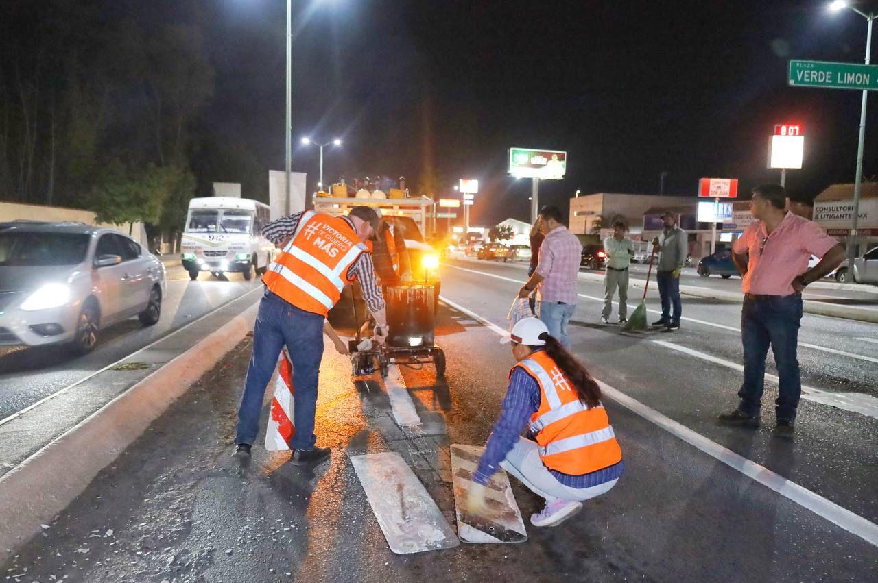 Está semana, se reunió con vecinos de la calle Pirul del fraccionamiento Las Flores para entregar 3,489 metros cuadrados de pavimento asfáltico; supervisó el trabajo nocturno de rehabilitación de señalética vial, limpia y pinta de camellones en la avenida 8 y el inicio de reparación de cruces viales sobre las vías del ferrocarril.