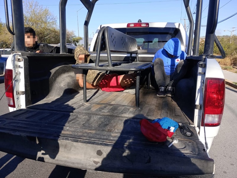 Al marcarles el alto, los tripulantes tomaron una actitud inicial evasiva, sin embargo, más adelante descendieron del vehículo y les fueron colocados los candados de manos.