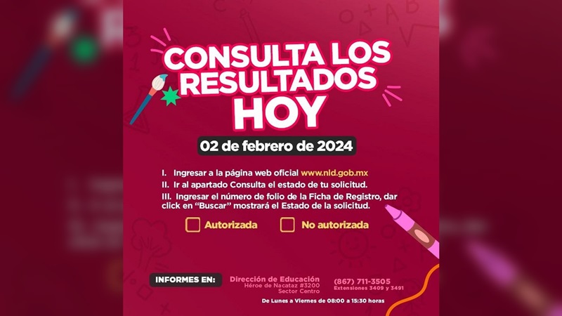 El secretario de Educación Cultura y Deporte, Ernesto Ferrara Theriot dio a conocer que en caso de aparecer con la solicitud “No autorizada”, podrán acercarse a la Dirección de Educación en el edificio anexo a presidencia municipal para realizar aclaraciones y en caso de proceder cambiar el estatus de la solicitud.