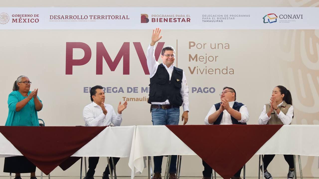 En su intervención, Luis Lauro Reyes, delegado de Programas para el Bienestar en Tamaulipas, y el coordinador de la Comisión Nacional de Vivienda (CONAVI), Juan José García Ramón, puntualizaron que el beneficio otorgado consiste en un monto económico importante para mejoramiento de su vivienda.