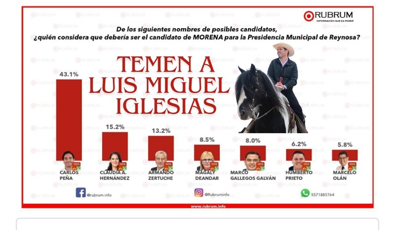 La encuesta realizada por la empresa Rubrum, no contempló al mejor y más posicionado aspirante a la presidencia municipal de Reynosa por Morena, pese al creciente apoyo que Luis Miguel Iglesias ha recibido por parte de los reynosenses.