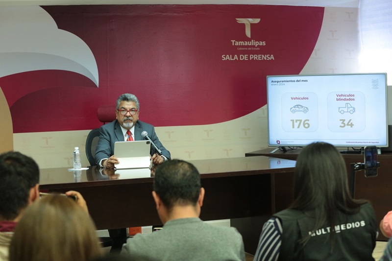 Sobre los aseguramientos del mes de enero explicó que se registraron 44 detenidos; se decomisaron 45 armas de fuego, 176 vehículos asegurados, incluyendo 34 blindados; 8,623 cargadores y cartuchos, 37 chalecos tácticos y 203 poncha llantas.