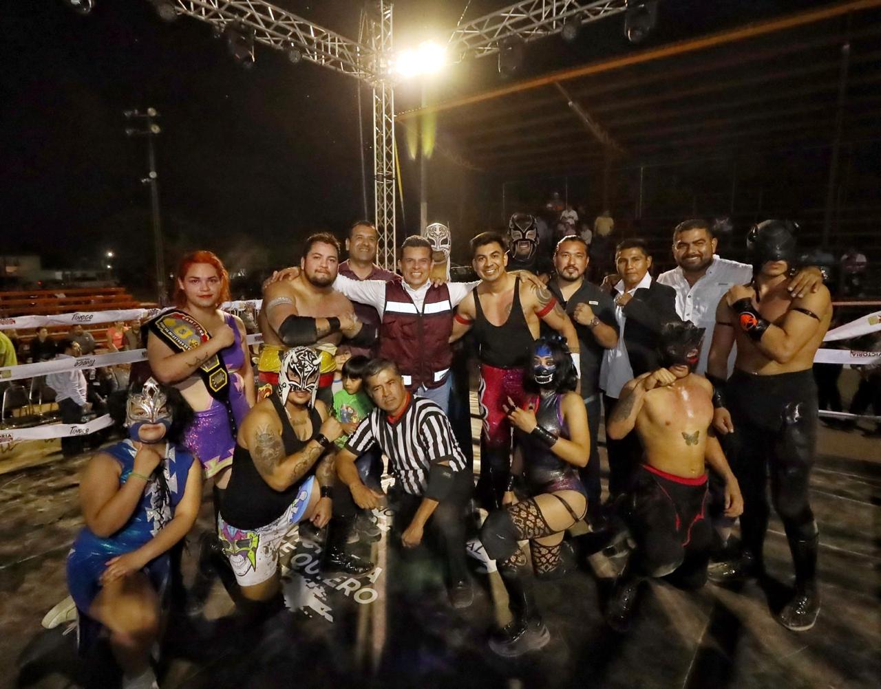 CIUDAD VICTORIA, TAMPS. Una tarde de intensa acción, diversión y sana convivencia, disfrutaron el presidente municipal Eduardo Gattás Báez y su esposa Lucy de Gattás junto a cientos de familias en la función de lucha libre y box mixto organizada por el Departamento de Deportes y la Juventud del Municipio.