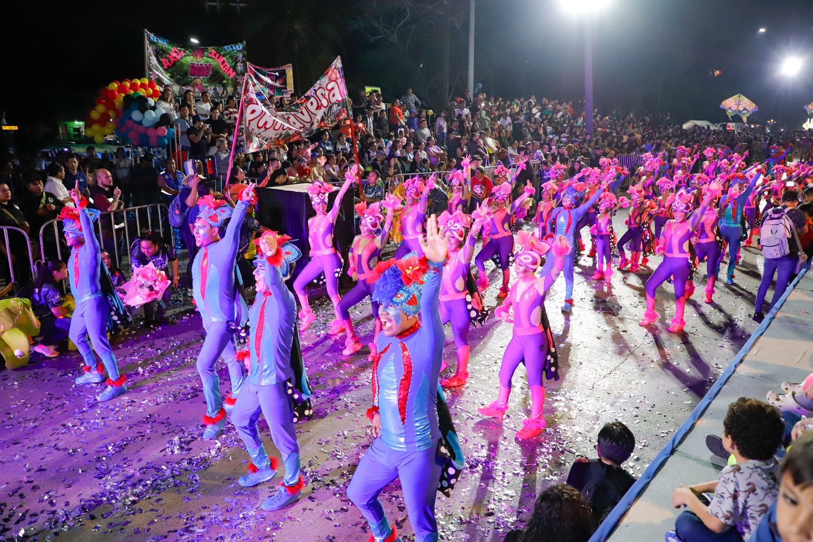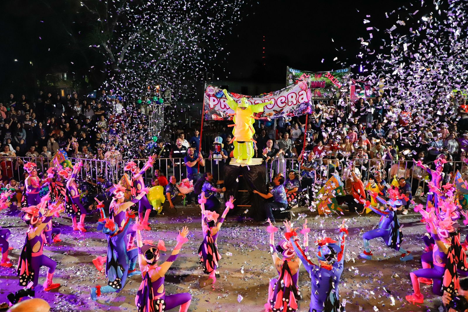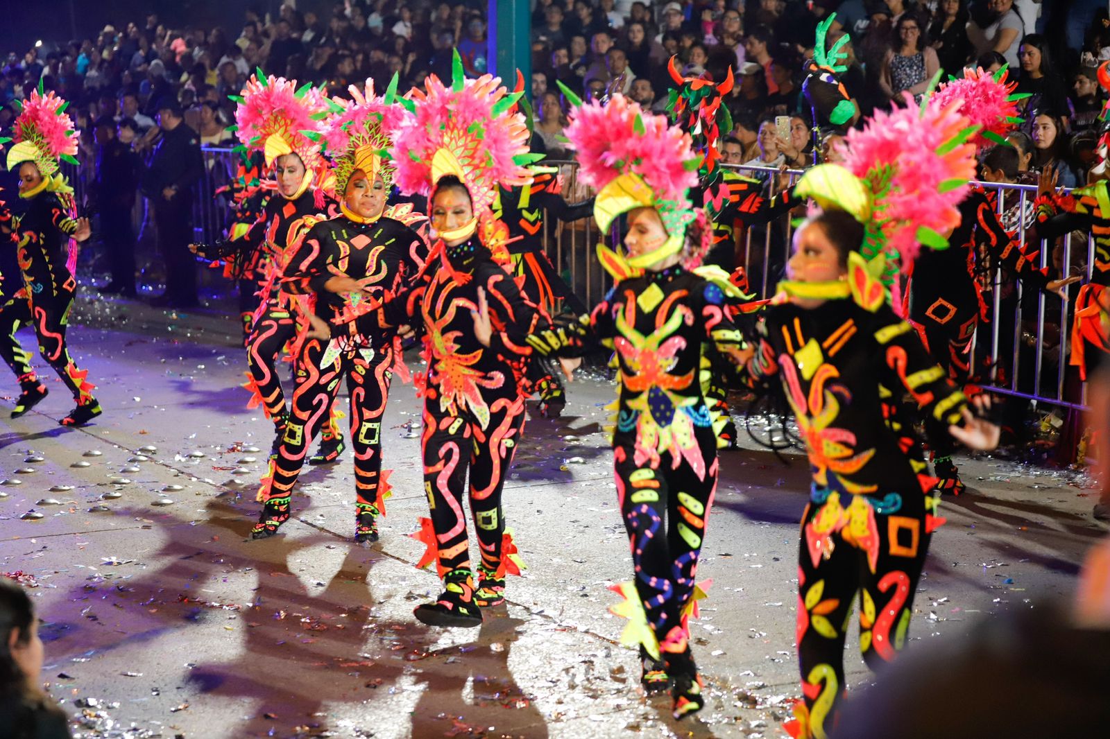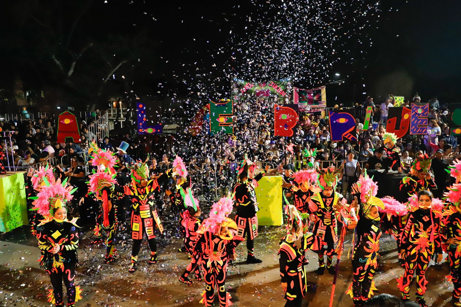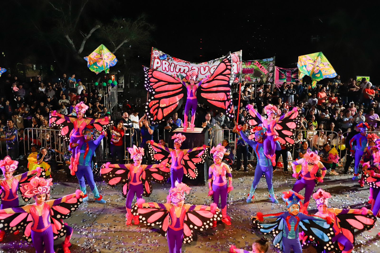 La tradicional celebración dio inicio en punto de las siete de la noche con la marcha de los contingentes que llenó de luz y color la avenida, animando a los casi 20 mil asistentes a vivir una noche mágica.