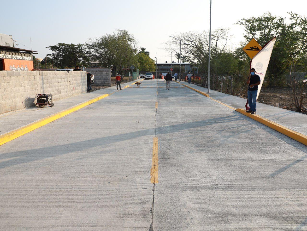 La intervención de esta vialidad consistió en aplicación de concreto hidráulico, reposición de red hidrosanitaria, alumbrado, guarniciones y banquetas, una obra integral que beneficia de manera directa a 3,025 personas y cuyo presupuesto fue aplicado gracias al programa Hidrocarburos Región 40.