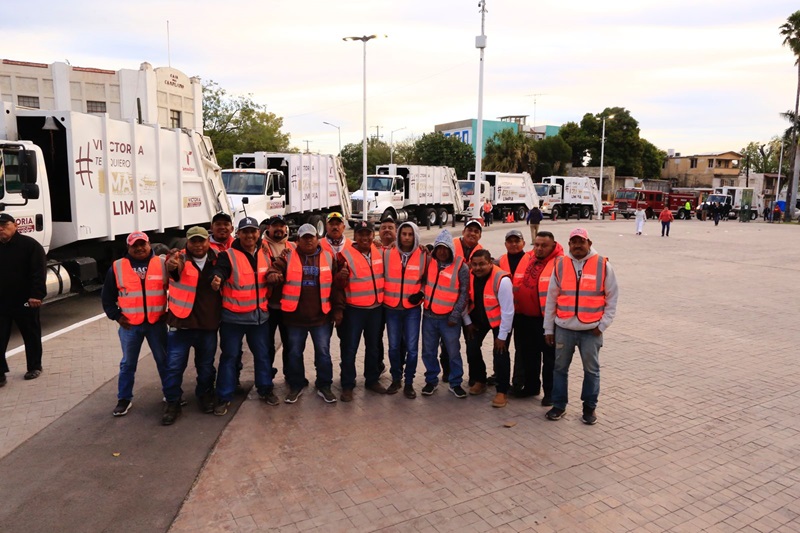 Junto al presidente municipal de Victoria, Eduardo Gattás Báez y en el marco de la ceremonia cívica de honores celebrada en el paseo Pedro José Méndez, de esta capital, el gobernador de Tamaulipas entregó equipo de barrido,11 motocicletas, dos motocarros, de bajo consumo de combustible, tres camiones de basura modelo 2023 y dos camiones recolectores de basura modelo 2024, además de un camión de bomberos donado al municipio y otro camión compactador de basura entregado por Petróleos Mexicanos al ayuntamiento.