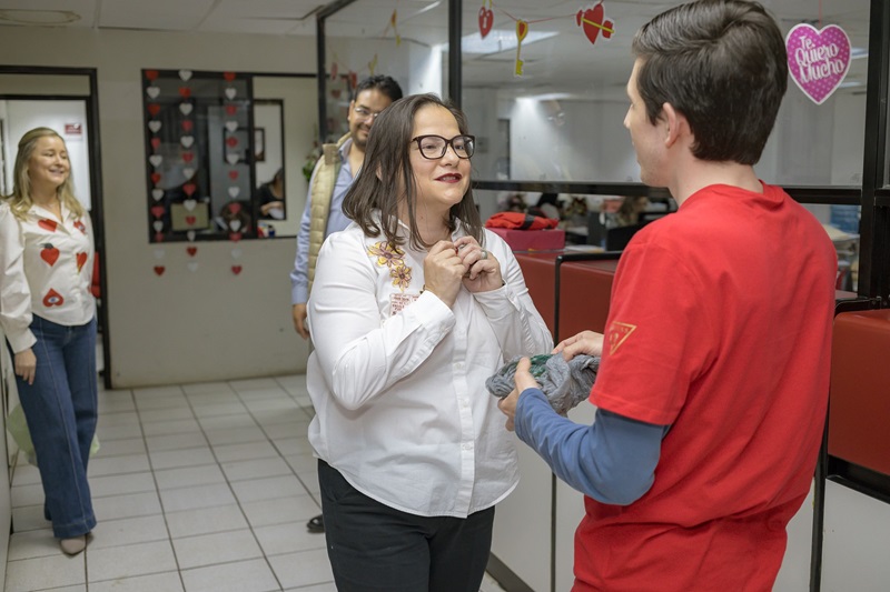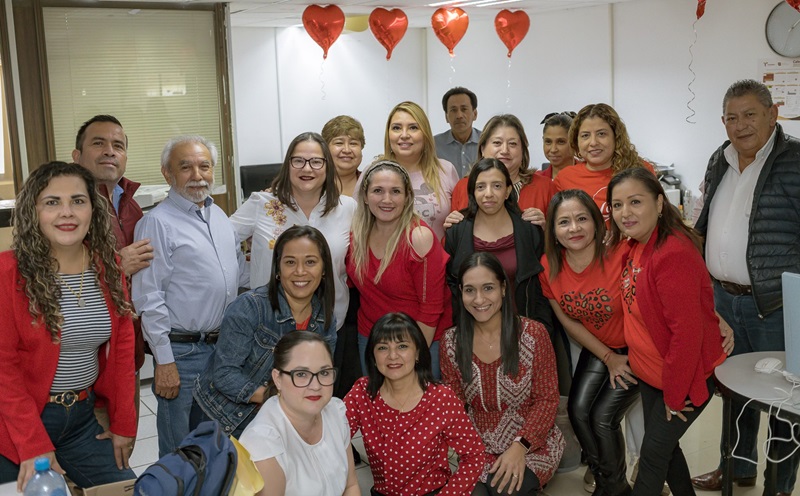 CIUDAD VICTORIA, TAMPS. Este 14 de febrero, en el marco del ‘Día del Amor y la Amistad’, la titular de la Secretaría de Educación de Tamaulipas, Lucía Aimé Castillo Pastor, saludó y convivió con personal de la dependencia.