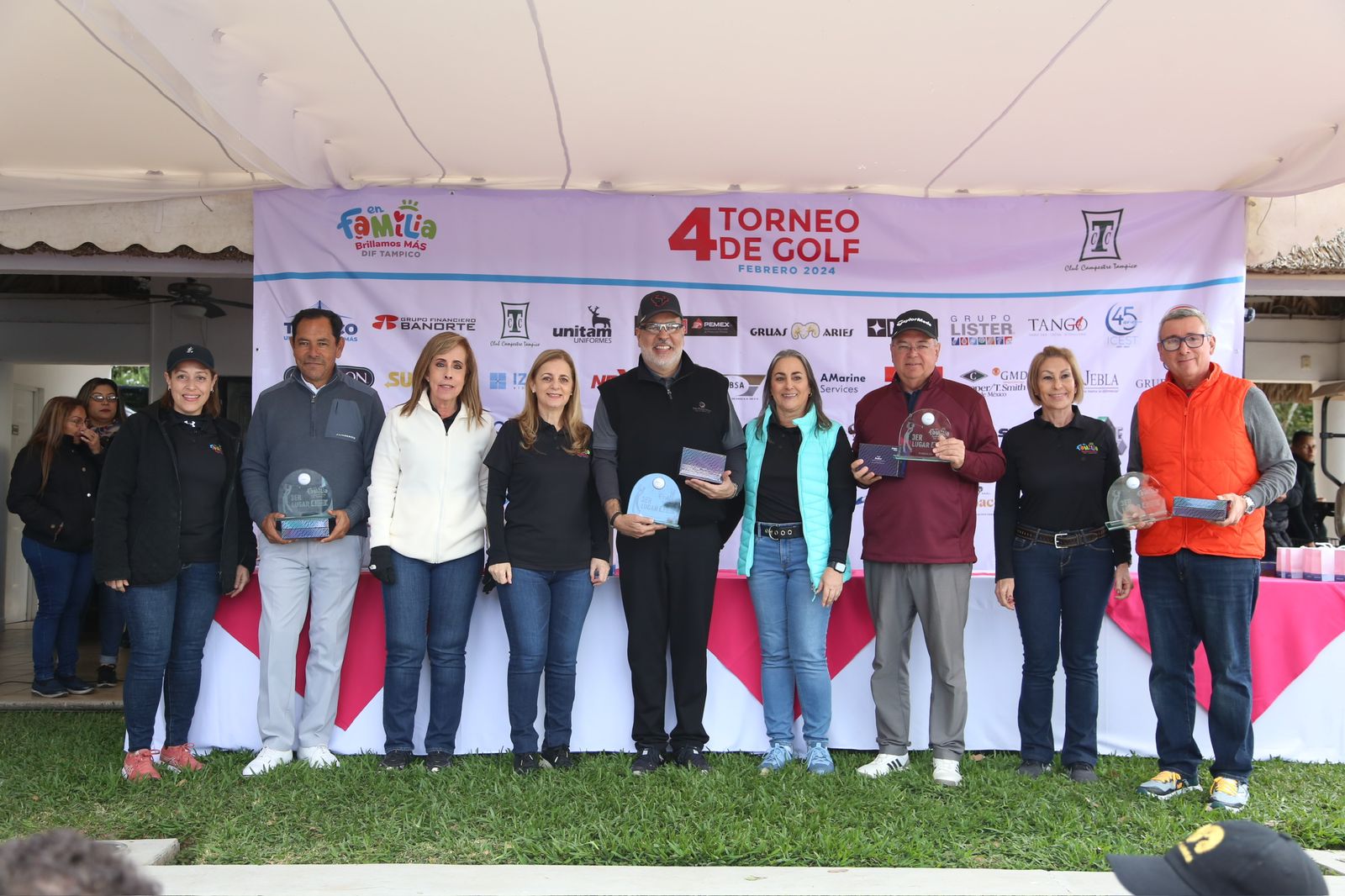 TAMPICO, TAMPS. Todo un éxito resultó el cuarto torneo de golf del Sistema DIF municipal, efectuado este domingo en el Club Campestre Tampico, el cual reunió a un total de 168 participantes que con su presencia, contribuyeron a fortalecer las acciones del organismo.