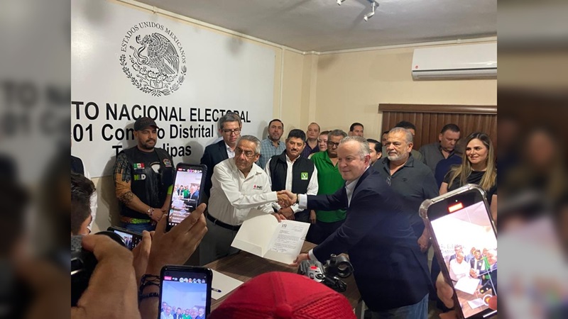 - El suceso tuvo lugar en las instalaciones del Instituto Nacional Electoral (INE) en Nuevo Laredo, por tratarse de un puesto federal al que aspira.