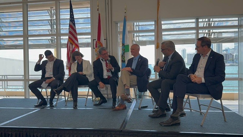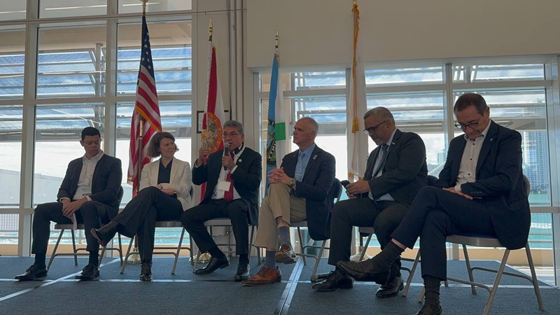 Participaron en este foro Wendy Conforme, CEO de Túnel Puerto de Miami, quien fungió como moderadora; Hydi Webb, director y CEO del Puerto de Miami; Ralph Cutie, director y CEO del Departamento de Aviación del Condado de Miami – Dade; el Dr. Rafael Echevarne, director general del Consejo Internacional de Aeropuertos – América Latina y el Caribe; Tatiana Gallego Lizon, jefa de División de Desarrollo, así como Wellington Andrade, CEO de la Asociación de Productores de Soya y Maíz de Mato, Brasil.