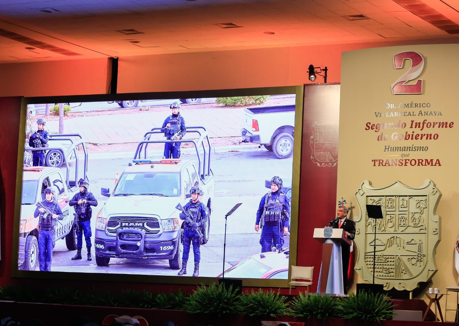 Villarreal Anaya mencionó que su gobierno ha dado la más alta prioridad para garantizar la paz, la seguridad y la justicia, por lo que se decidió cambiar radicalmente la estrategia, además del equipamiento de 310 patrullas nuevas, 52 de ellas blindadas y 14 unidades tácticas de reacción rápida y la rehabilitación de seis helicópteros de los cuales cuatro participan ya en el despliegue de operaciones.