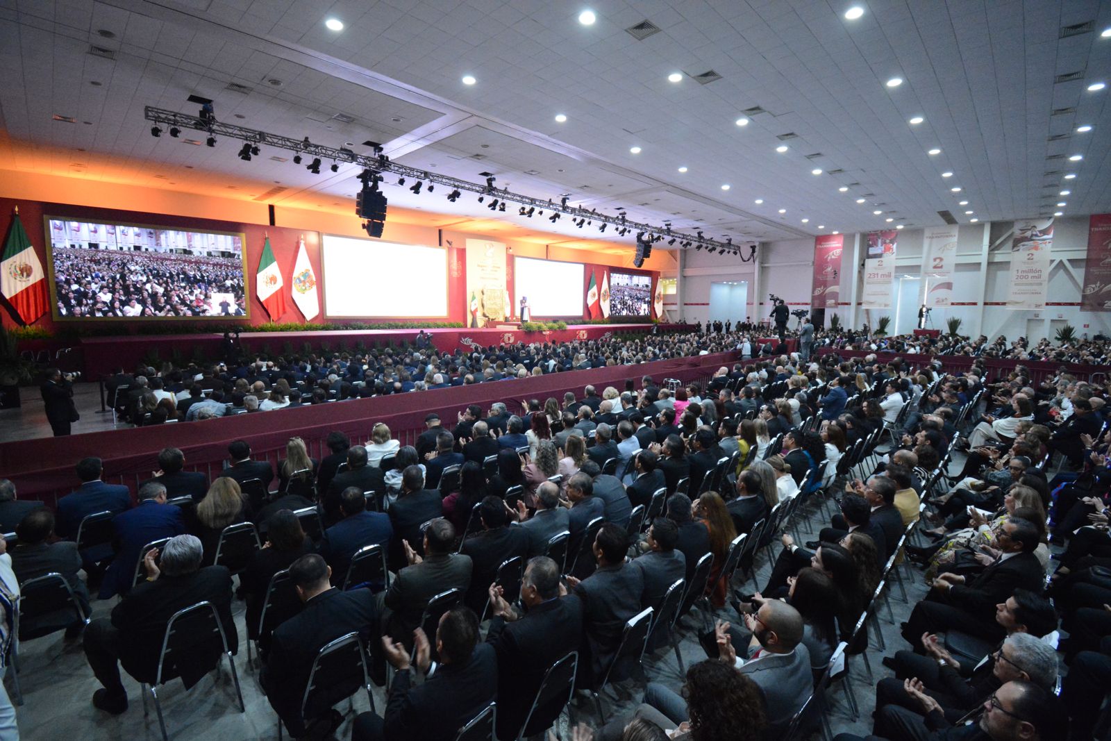Tras recordar que recibió un gobierno con las arcas públicas vacías y una entidad sobre endeudada, Villarreal Anaya apuntó que, con las decisiones adecuadas, la recaudación de ingresos propios y el apoyo de la Federación, se ha podido fortalecer el enfoque humanista para invertir más en seguridad y paz y recuperar la calidad y suficiencia de los sistemas de salud y educación pública.
