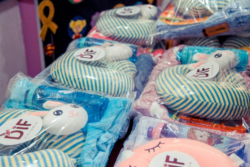 CIUDAD VICTORIA, TAMPS. Luego de implementar diferentes actividades con causa, el Voluntariado del DIF Victoria, que preside Lucy de Gattás, logró reunir recursos para elaborar más de 40 kits con regalos para niñas y niños con cáncer del área de oncología del Hospital Infantil de Tamaulipas.