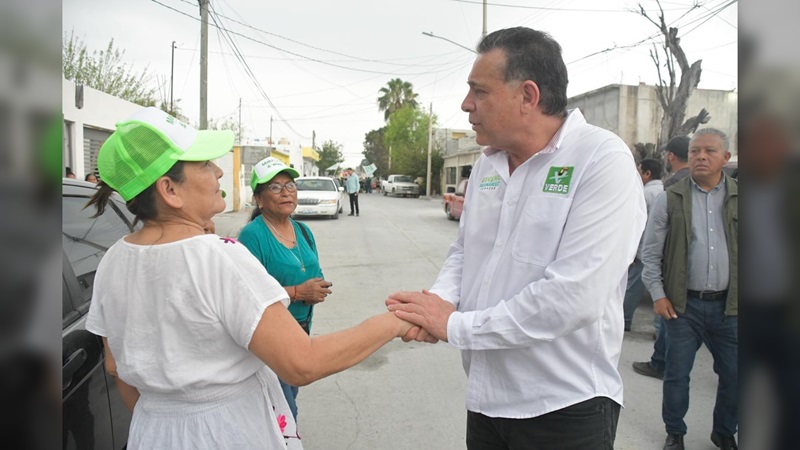 REYNOSA, TAMPS. Los candidatos del Verde al Senado de la República, Eugenio Hernández Flores y Maki Ortiz Domínguez, continúan conquistando corazones en Reynosa, donde esta tarde ciudadanos les manifestaron su respaldo y apoyo durante el recorrido en la colonia Reserva Territorial Campestre.