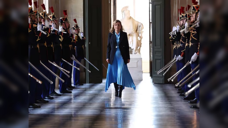 La primera mujer que preside la Asamblea Nacional de Francia, Yael Braun-Pivet, llega al Palacio de Versalles para la ceremonia: “¿Acaso Francia va contracorriente? No, está en la vanguardia. Está en su lugar", declaró. FOTO