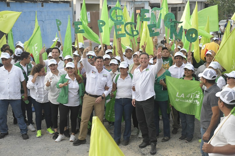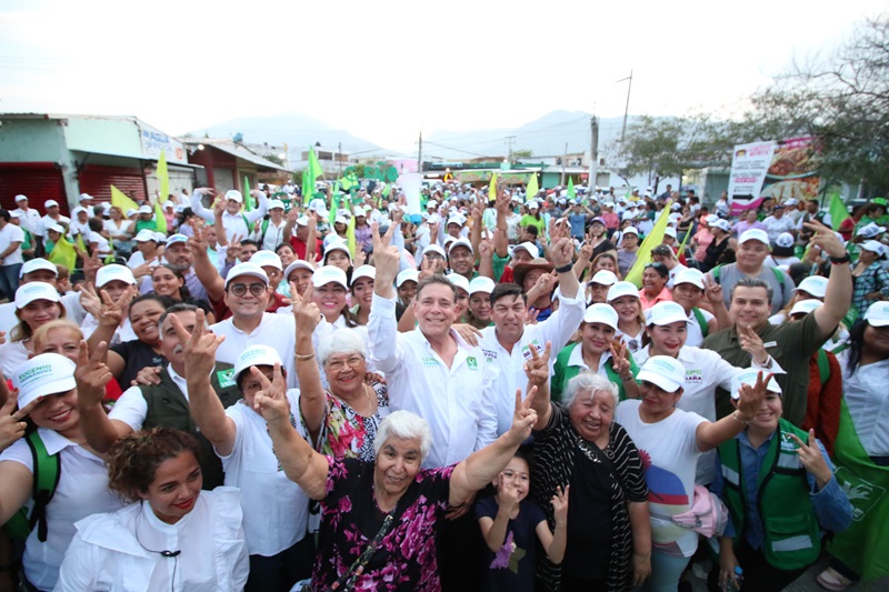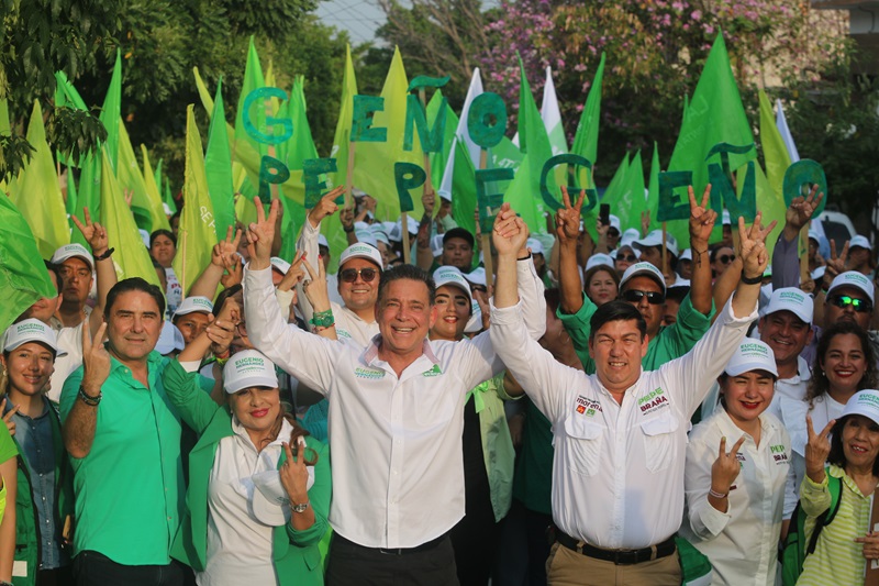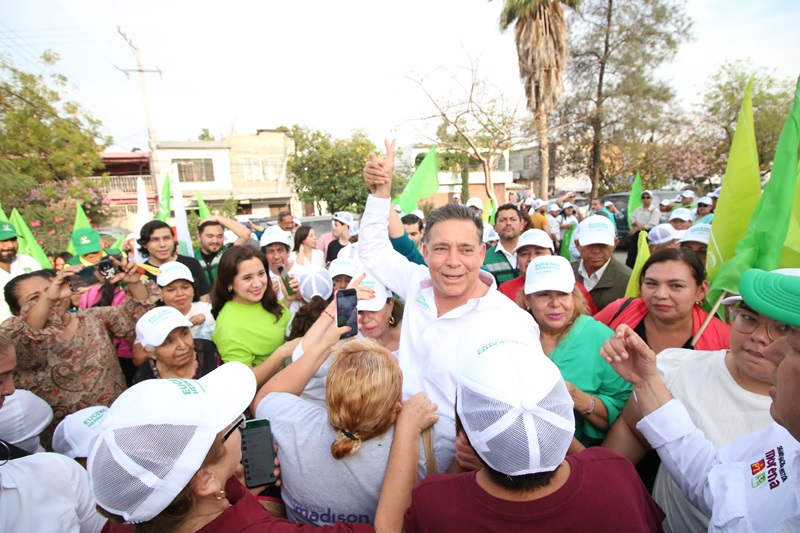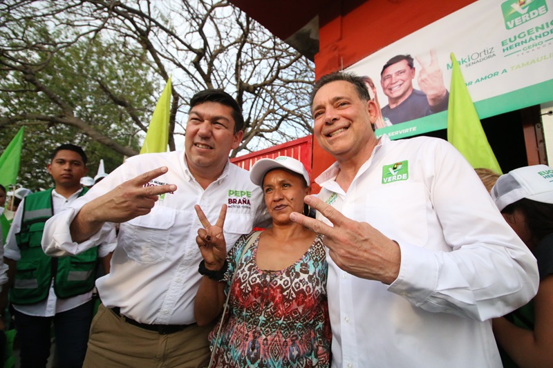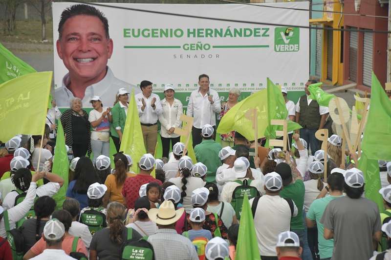CIUDAD VICTORIA, TAMPS. La ola Verde llegó a la capital del estado, arrasando con el cariño de la gente que recibe a Eugenio “Geño” Hernández con porras y muestras de cariño en este municipio donde está su casa y su gente.