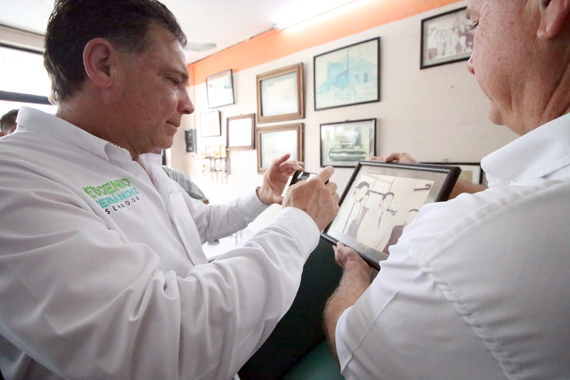 En una de las paredes de esta tradicional cafetería, el candidato vio una fotografía de su fundación, donde se encontraba su papá, Eugenio Hernández Balboa junto con Juan Pablo González, esa foto vale oro, dijo “Geño”, al tiempo de que reconoció que ambos hombres, trabajadores y comprometidos con las causas sociales, siempre tuvieron la visión de que El Mante es una ciudad pujante, con muchas riquezas, pero sobretodo, con la gente más dulce de Tamaulipas.