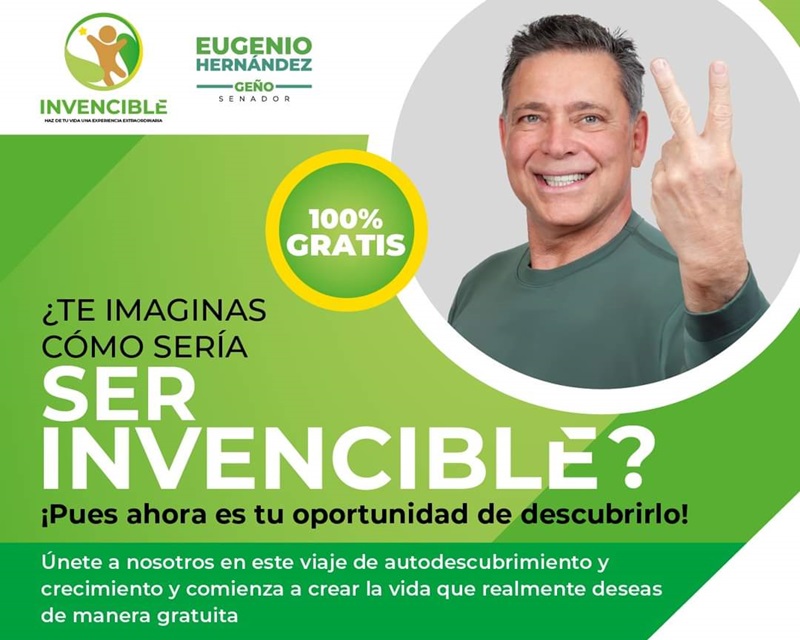 CIUDAD VICTORIA, TAMPS. El candidato a Senador por el Partido Verde, Eugenio “Geño” Hernández Flores, te invita a través de un curso denominado, “Invencible, haz de tu vida una experiencia extraordinaria” a desarrollar tu potencial, superar obstáculos y crear la vida que deseas.