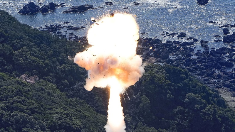 El cohete Kairos de la compañía japonesa Space One explotó en el aire poco después de su lanzamiento. FOTO