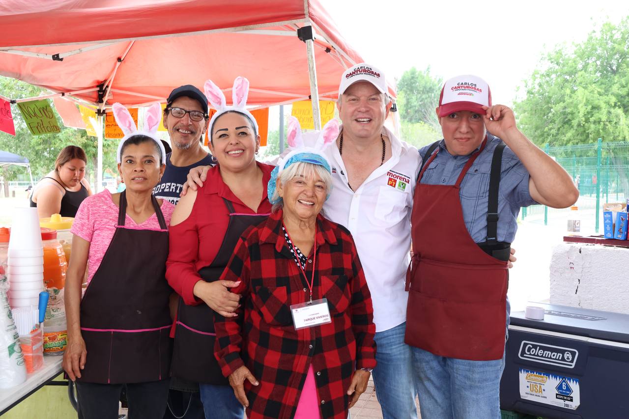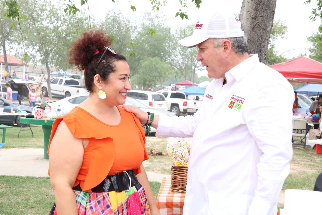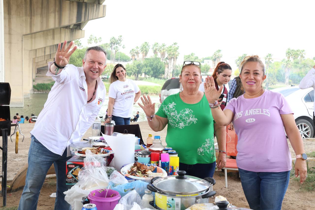NUEVO LAREDO, TAMPS. En un ambiente completamente familiar, rodeado de niños, jóvenes y adultos, el candidato a Diputado Federal por la coalición «Sigamos Haciendo Historia en Tamaulipas», Carlos Canturosas Villarreal junto a su esposa e hijos, celebraron el Domingo de Pascua en distintos puntos de la ciudad junto a los neolaredenses.