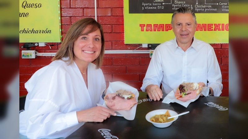 TAMPICO, TAMPS. Al efectuar una visita a la zona de los mercados, acompañado de la Diputada Federal con licencia, Rosa González Azcárraga, con quien degustó de una popular torta de la barda, el abanderado de la Alianza Fuerza y Corazón por México, destacó que en los últimos años los oferentes del mercado y los comerciantes dedicados a la venta de este platillo típico del municipio, fueron beneficiados con la modernización integral de la zona donde desarrollan su actividad económica.