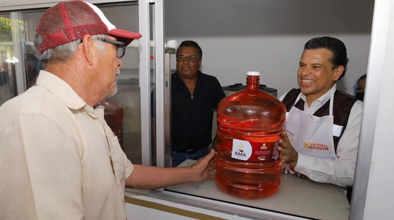CIUDAD VICTORIA, TAMPS. El segundo centro de Abastecimiento Municipal de Agua y Alimentos –AMA-, que suministrará agua purificada y gratuita a más de 350 familias del sector poniente de Victoria, fue inaugurado este jueves por colonos y autoridades municipales.