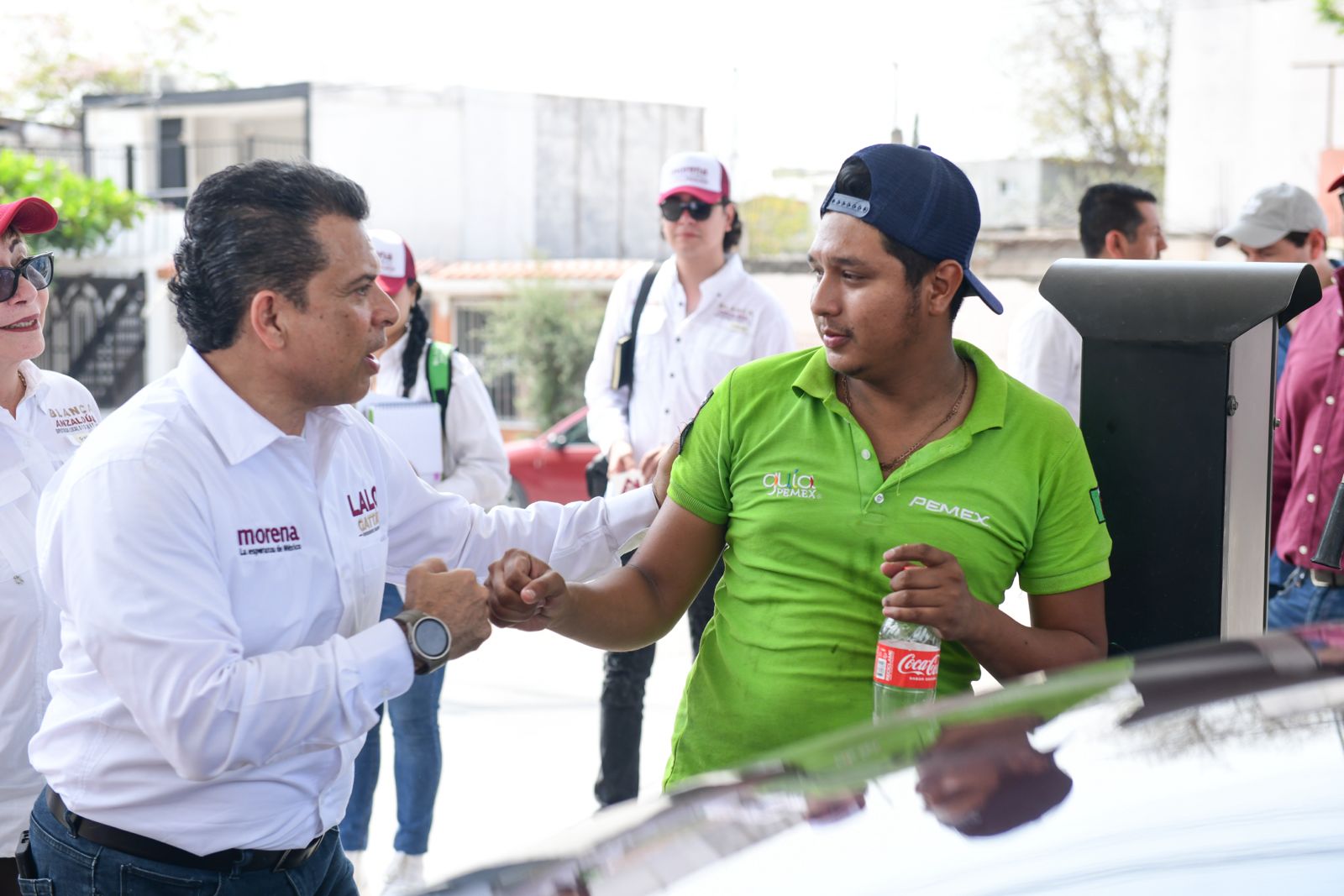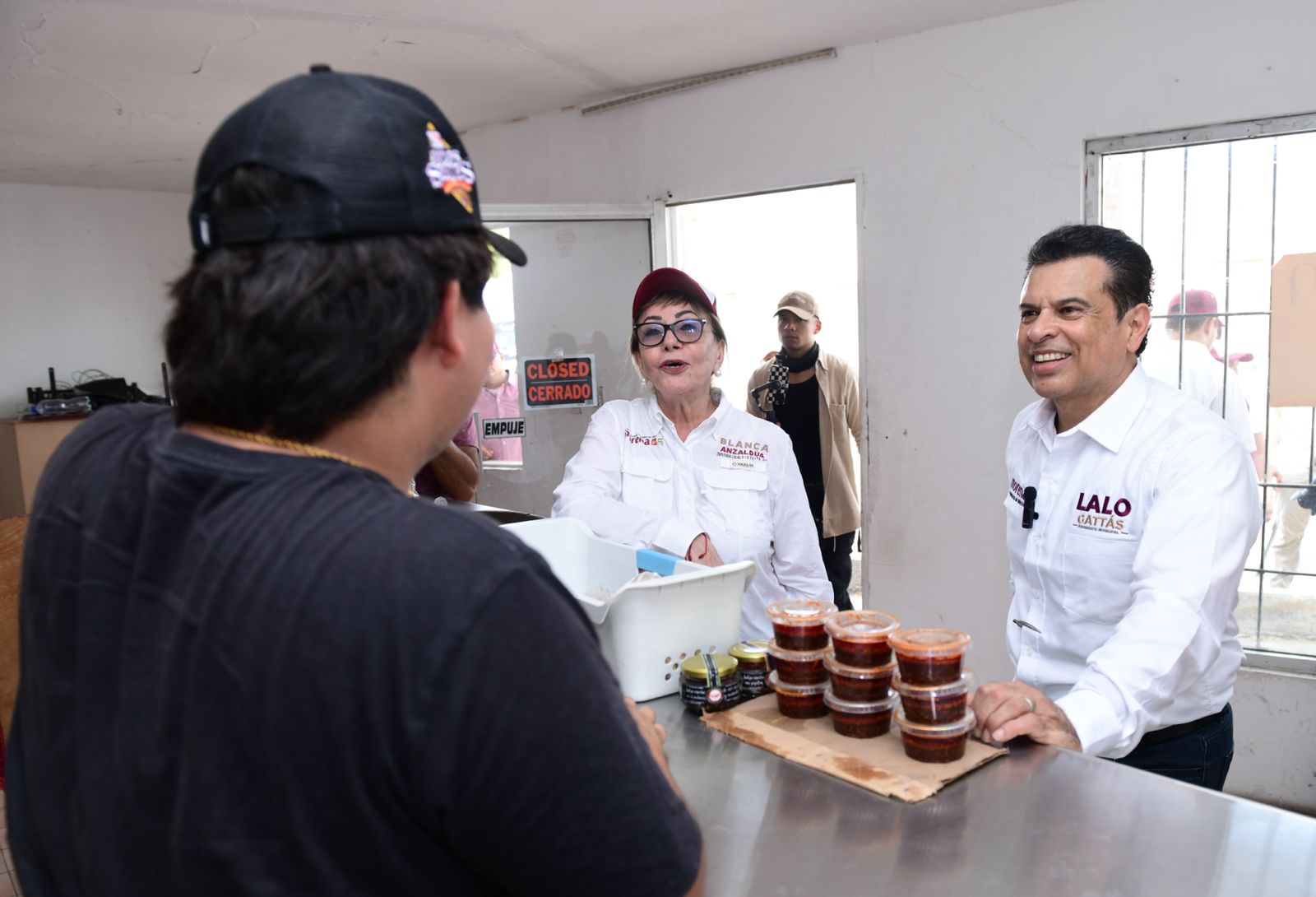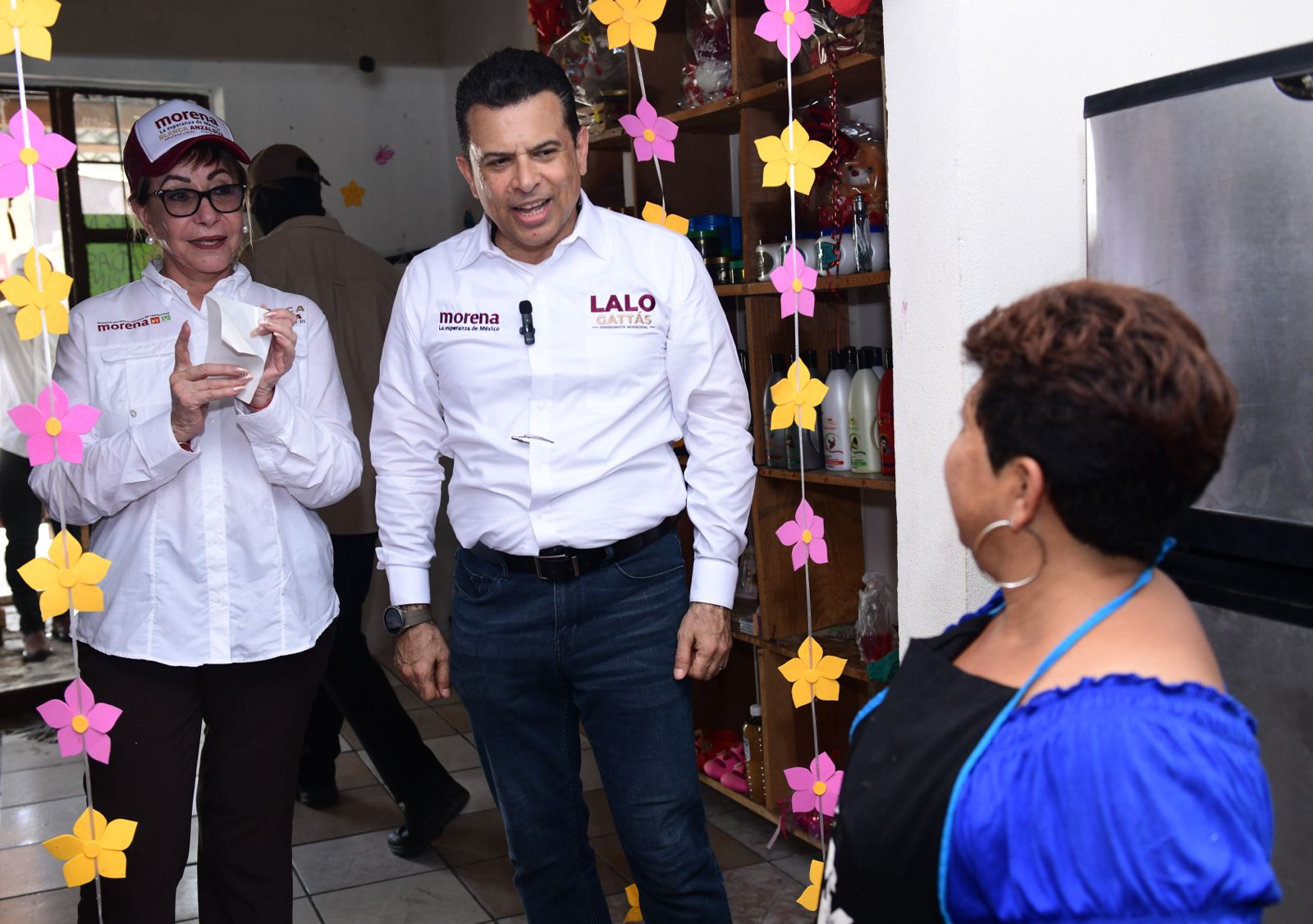 CIUDAD VICTORIA, TAMPS. En su segundo día de campaña, el candidato de MORENA a la presidencia municipal de Victoria Lalo Gattás Báez visitó esta mañana, junto a Blanca Anzaldúa, candidata a diputada local por el distrito 14, la zona comercial de la avenida Zeferino Fajardo.