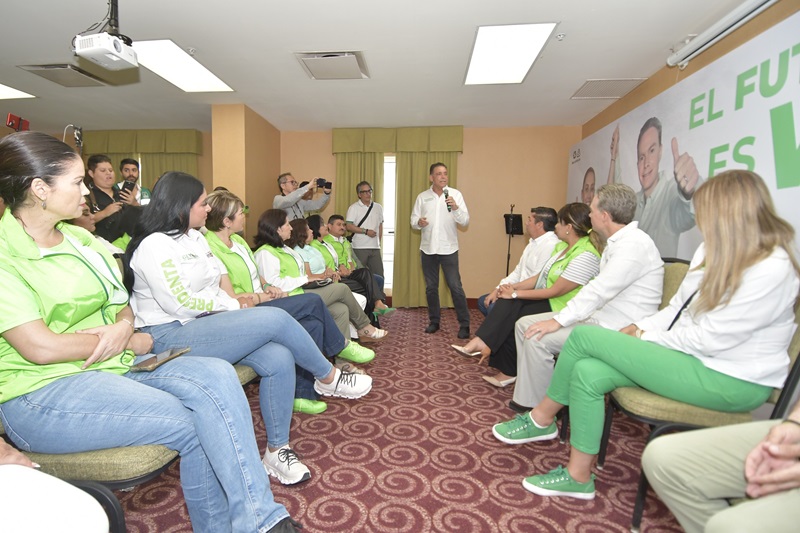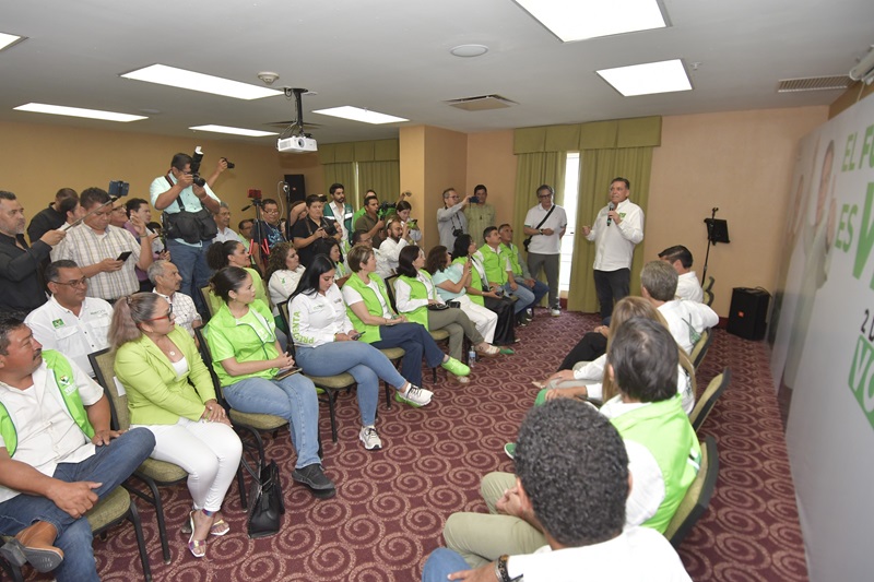 En el encuentro que tuvo el Senador con licencia Manuel Velasco con la familia Verde de Tamaulipas, estuvo arropado de quiénes encabezan las candidaturas locales y federales en el estado, así como del Comité Estatal del Partido Verde.