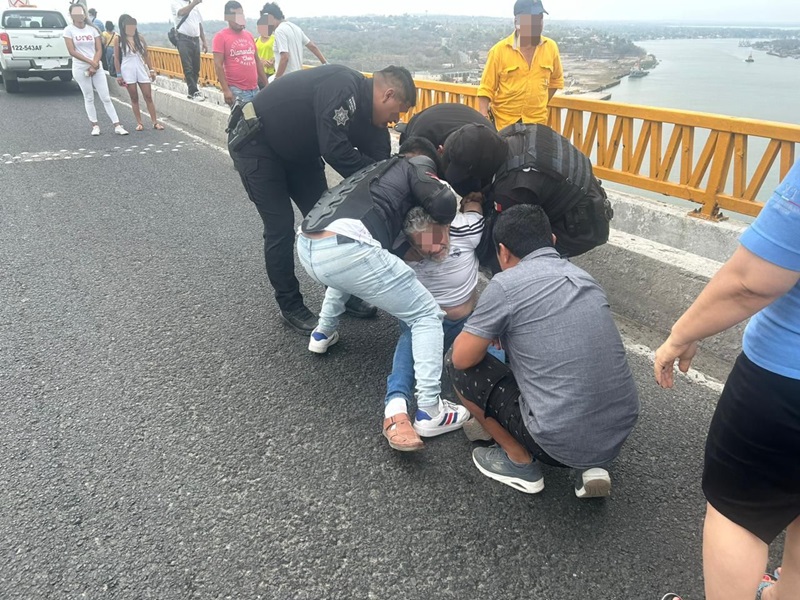 TAMPICO, TAMPS. Personal de la Guardia Estatal impidió el suicidio de una persona del sexo masculino, quien manifestó su intención de aventarse desde el Puente Tampico.