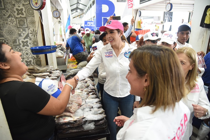 TAMPICO, TAMPS. Marcela Unda, candidata de la alianza “Fuerza y Corazón por Tamaulipas” a la Diputación local por el distrito 21, estuvo en la colonia Cascajal y en el mercado de Mariscos La Puntilla, acompañada de Rosa González Azcárraga, candidata a la alcaldía porteña y de Pepe Schekaibán, aspirante a la Diputación local por el Distrito 22.