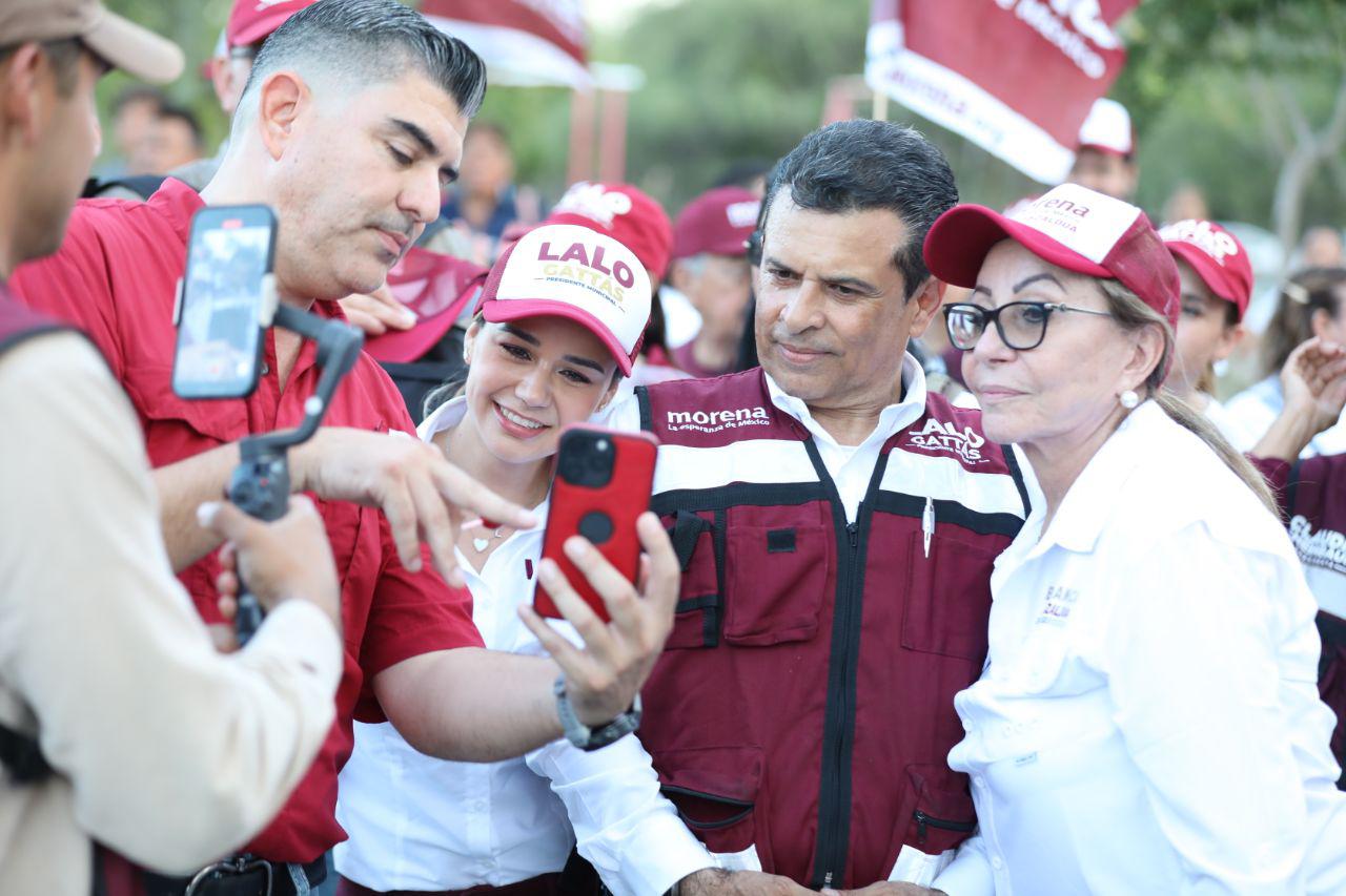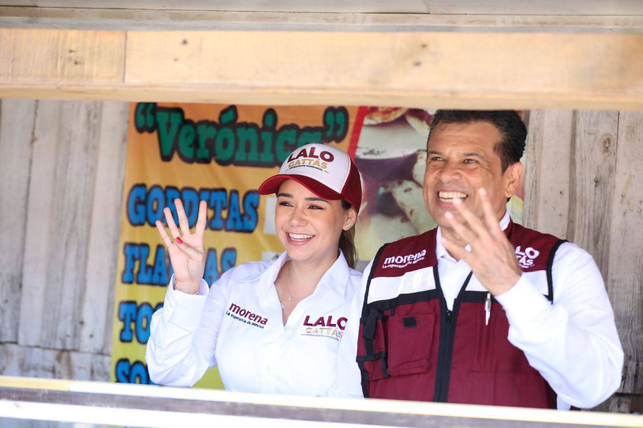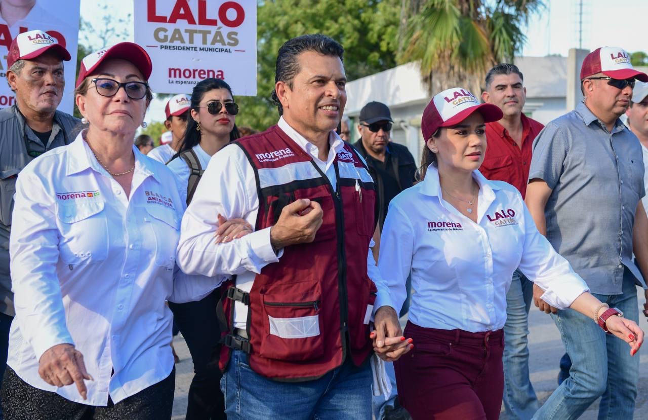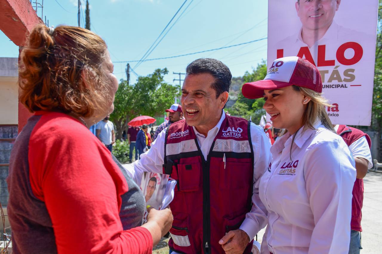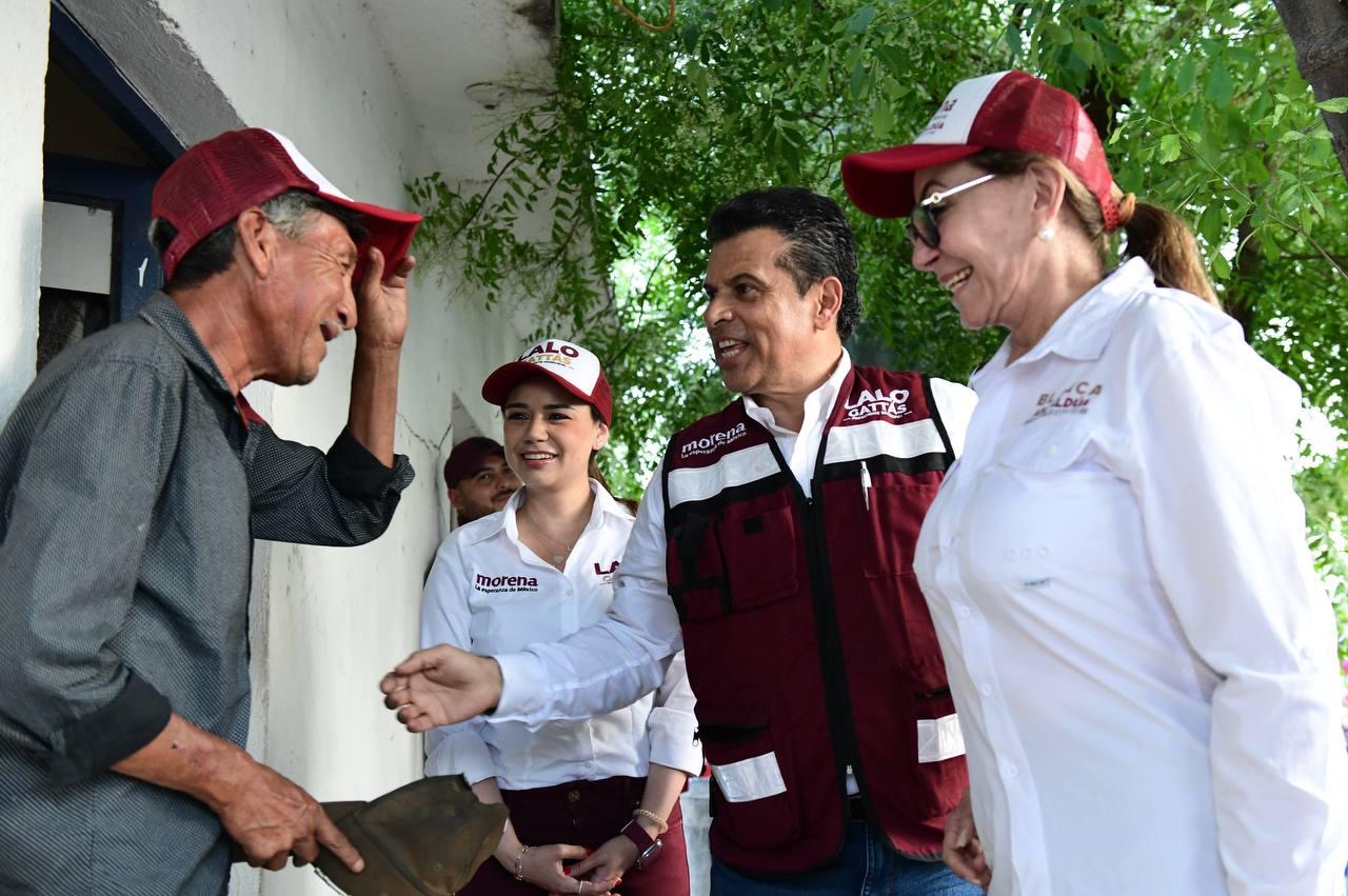 CIUDAD VICTORIA, TAMPS. Al frente de la ola guinda y con paso firme, Lalo Gattás y su esposa Lucy recorrieron este martes las colonias Moderna e Ignacio Zaragoza donde recibió el respaldo contundente del electorado para avanzar juntos hacia el triunfo y la transformación de Victoria.