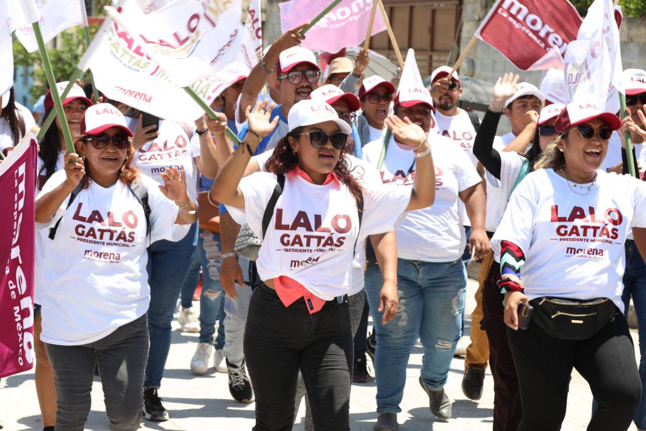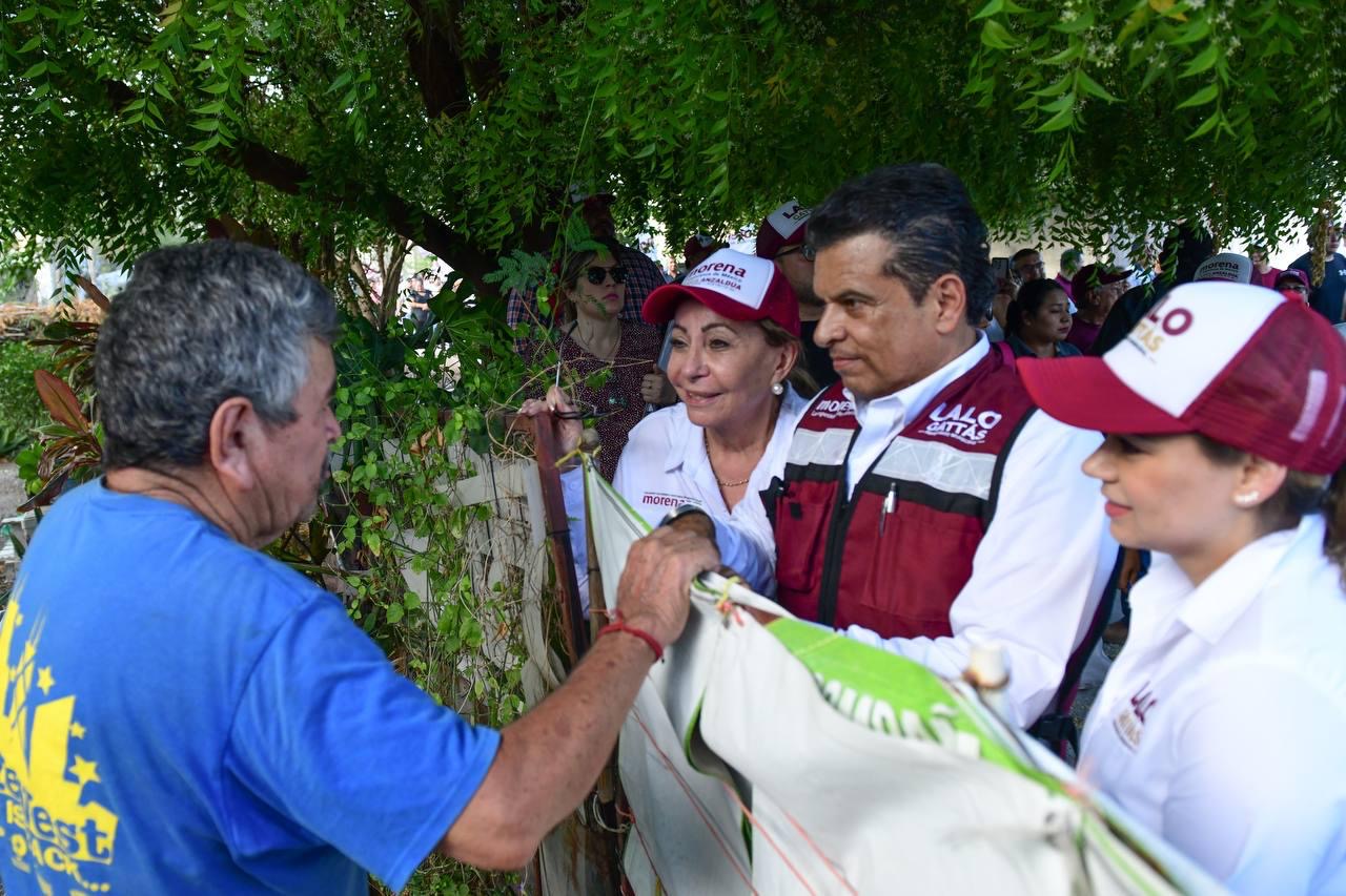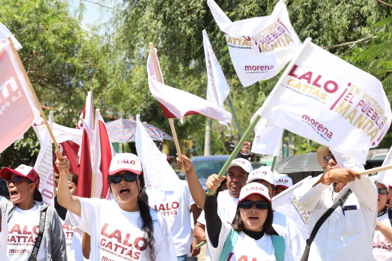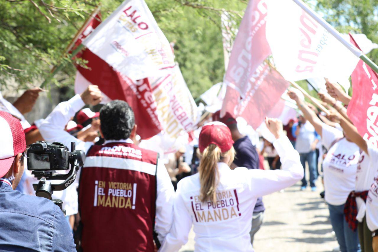 CIUDAD VICTORIA, TAMPS. Al frente de la ola guinda y con paso firme, Lalo Gattás y su esposa Lucy recorrieron este martes las colonias Moderna e Ignacio Zaragoza donde recibió el respaldo contundente del electorado para avanzar juntos hacia el triunfo y la transformación de Victoria.